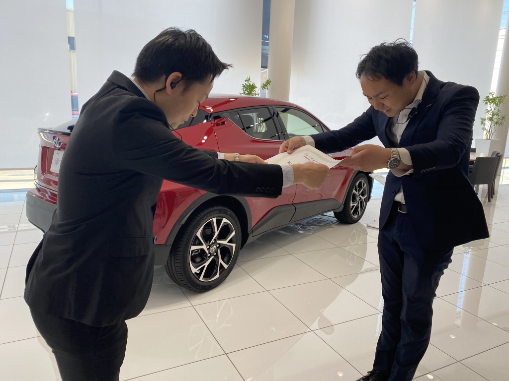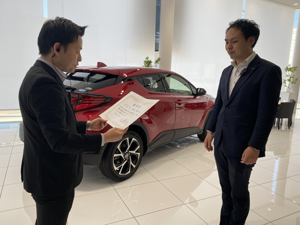 こんにちは!先週6月17日に新型ハリアーが発売し、いつも以上に気合が入っている金沢西店です\(^o^)/ハリアーの現車をまだご覧頂けていないお客様、ぜひ金沢西店へお越しください!!さて、石川トヨタ自動車では毎年営業スタッフの中で優秀な成績を収めたスタッフ数名に送られる社長賞というものがあります。なんと!!!!