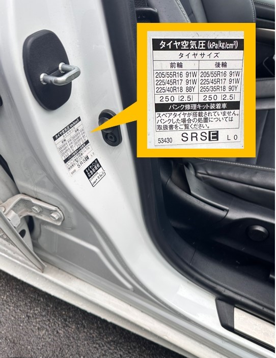 空気圧の基準値は、運転席ドアを開けたボデーに