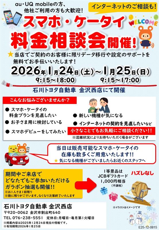 ついに!金沢西店でも開催します(^^)/ auイベント~1/24(土)・25(日)☆彡